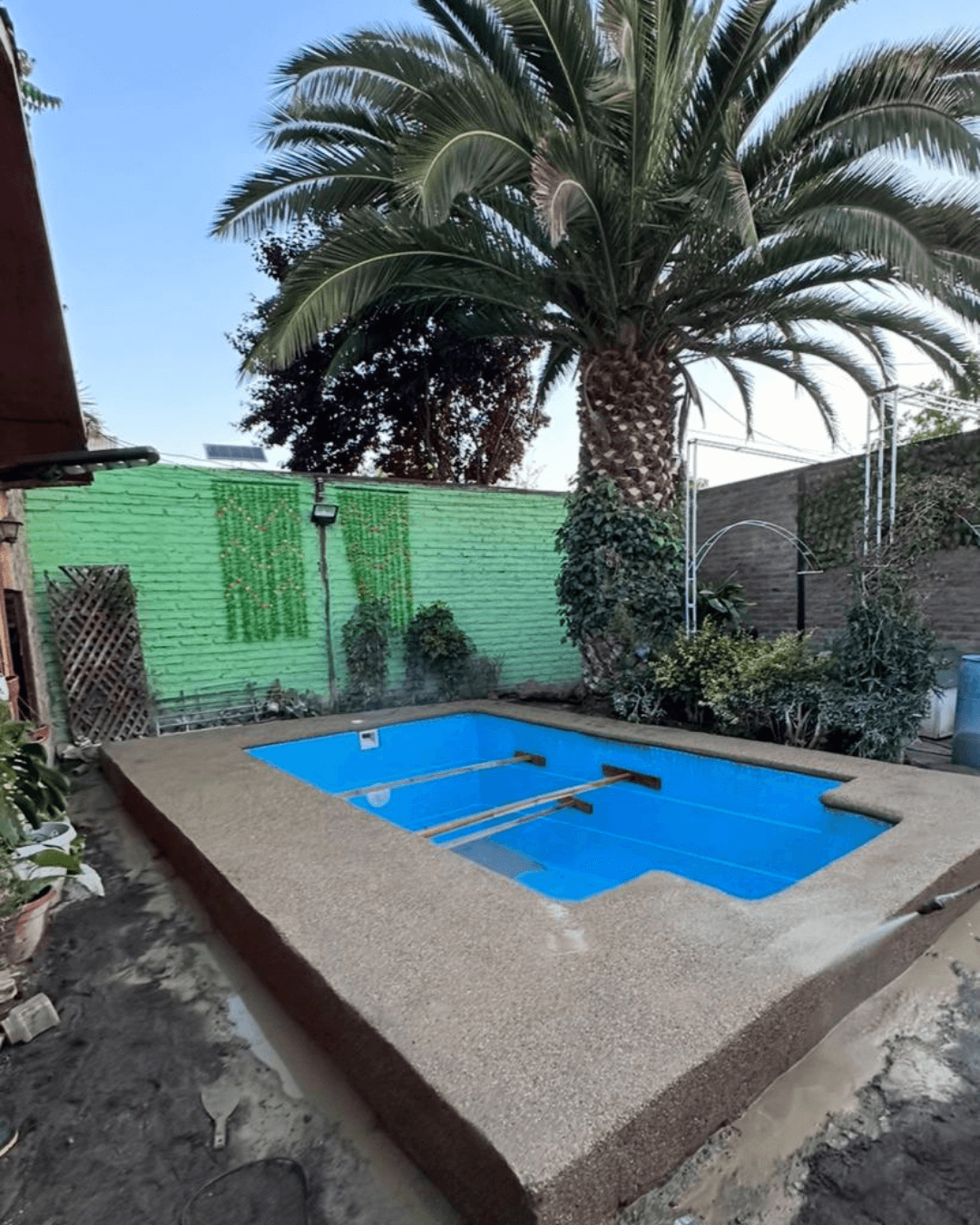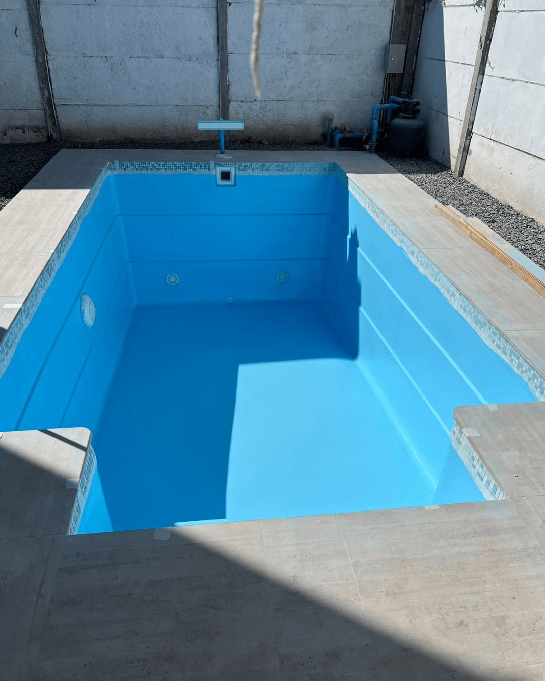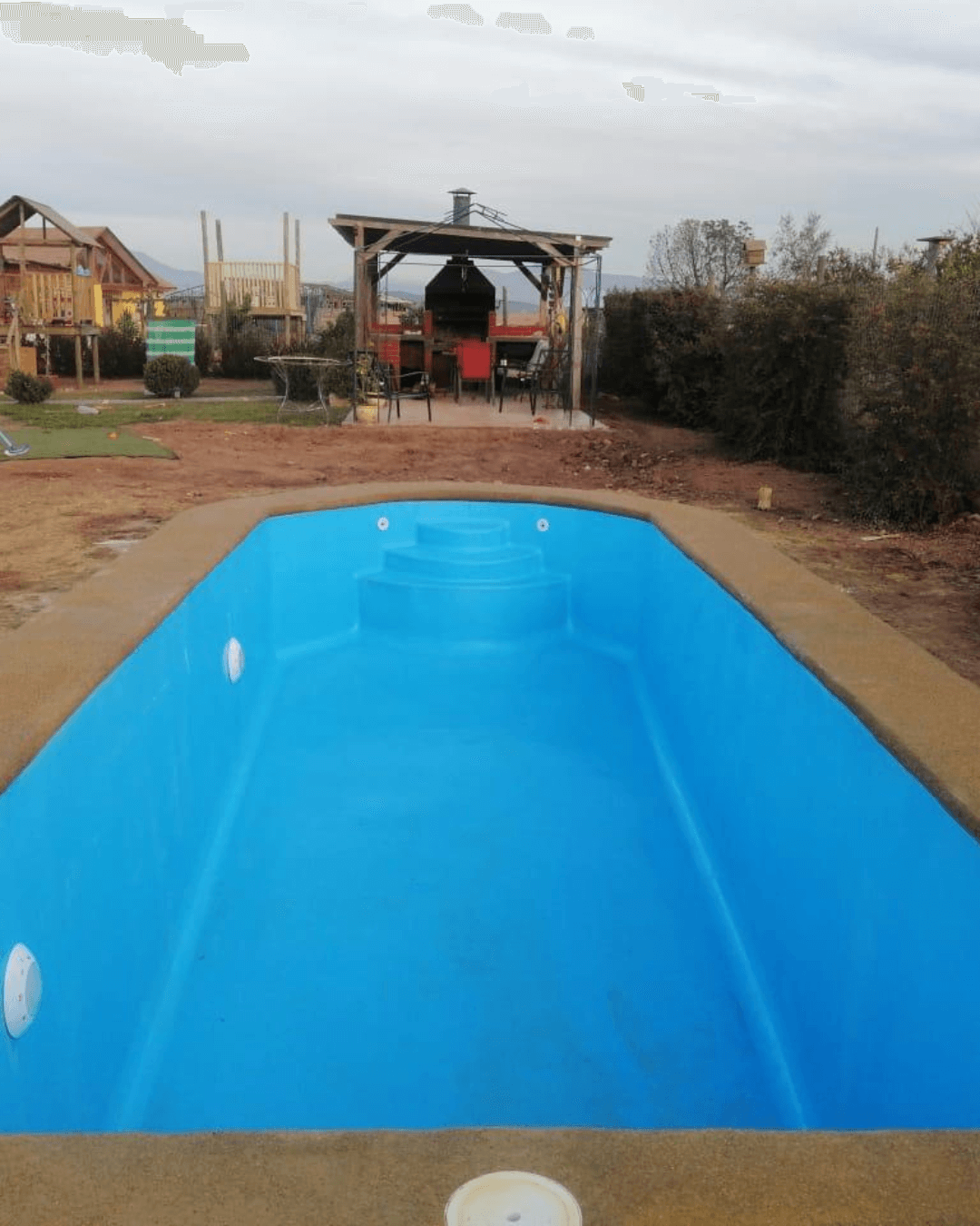 Aquí se lleva a cabo el montaje del casco en la excavación realizada anteriormente. Este proceso se realiza mediante maniobras manuales y/o con equipos de pluma, dependiendo de la evaluación hecha en la visita técnica inicial. Una vez finalizado el montaje de la piscina, se inicia el relleno y compactación perimetral. Este relleno puede ser el material extraído de la excavación (si es adecuado) y/o maicillo, en caso de que el suelo excavado no cumpla con las condiciones mecánicas necesarias para su reutilización.